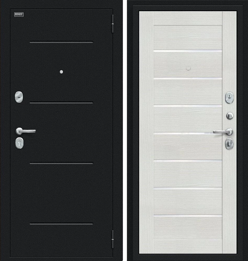 Надежная входная Дверь Браво Техно Букле черное/Bianco Veralinga премиум класса по цене 31 613 руб. Большая толщина стали защитит от проникновения в ваш дом, квартиру или коттедж. Используется очень качественная фурнитура: замки, цилиндры, ручки, защелки. Покрытие и отделка двери изготовлено под внимательным контролем производителя. Дверь имеет долгий срок службы и гарантию.