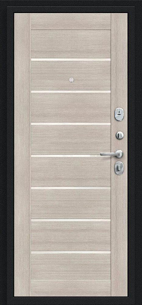 Надежная входная Дверь Браво Техно Букле черное/Cappuccino Veralinga премиум класса по цене 31 613 руб. Большая толщина стали защитит от проникновения в ваш дом, квартиру или коттедж. Используется очень качественная фурнитура: замки, цилиндры, ручки, защелки. Покрытие и отделка двери изготовлено под внимательным контролем производителя. Дверь имеет долгий срок службы и гарантию.