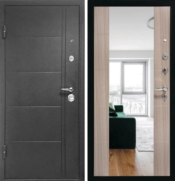 Надежная входная Дверь Эверест Зеркало Сандал Серый премиум класса по цене 34 043 руб. Большая толщина стали защитит от проникновения в ваш дом, квартиру или коттедж. Используется очень качественная фурнитура: замки, цилиндры, ручки, защелки. Покрытие и отделка двери изготовлено под внимательным контролем производителя. Дверь имеет долгий срок службы и гарантию.