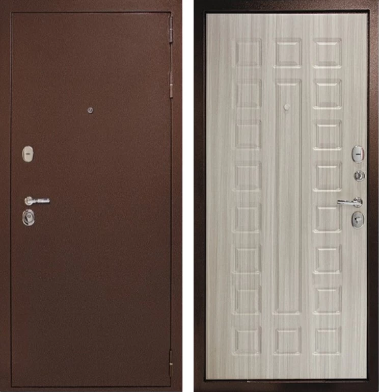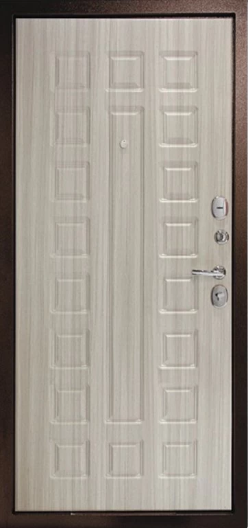 Надежная входная Дверь Рубикон 1 Медь Сандал белый премиум класса по цене 33 083 руб. Большая толщина стали защитит от проникновения в ваш дом, квартиру или коттедж. Используется очень качественная фурнитура: замки, цилиндры, ручки, защелки. Покрытие и отделка двери изготовлено под внимательным контролем производителя. Дверь имеет долгий срок службы и гарантию.
