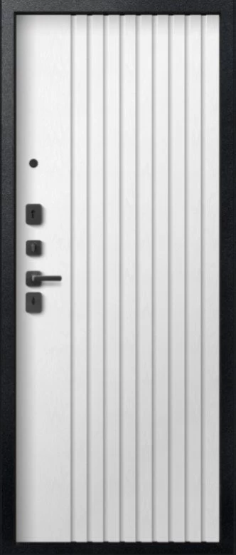 Надежная входная Дверь V-15 Черный муар + Бетон темный - Софт ясень белый премиум класса по цене 44 063 руб. Большая толщина стали защитит от проникновения в ваш дом, квартиру или коттедж. Используется очень качественная фурнитура: замки, цилиндры, ручки, защелки. Покрытие и отделка двери изготовлено под внимательным контролем производителя. Дверь имеет долгий срок службы и гарантию.